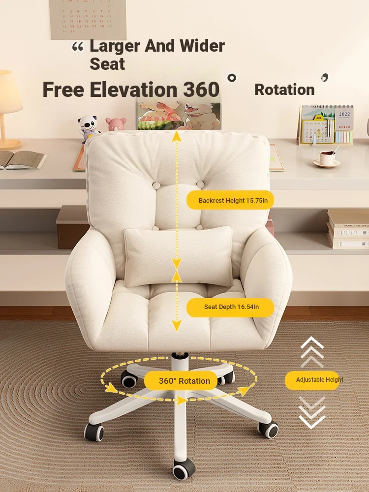 Elegant Makeup Chair for Home and Office - Stylish Rotating Vanity Stool for Girls' Bedrooms, Creamy Aesthetic Design, Perfect for Makeup and Nail Art.