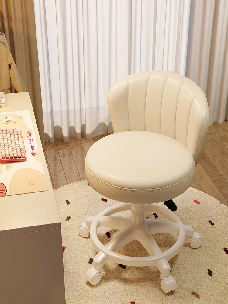 Elegant Makeup Chair with Backrest - Adjustable Swivel Stool for Home Use, Perfect for Women's Bedrooms and Vanity Desks, Ideal for Nail Art and Beauty Treatments.