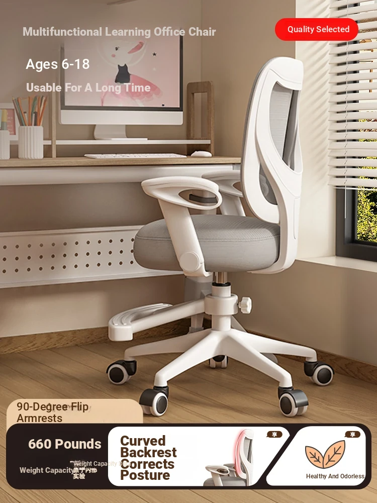 Adjustable Height Study Chair for Kids and Teens - Breathable Backrest and Lumbar Support, Perfect for Home Use, Ergonomic Design for Comfort and Focus