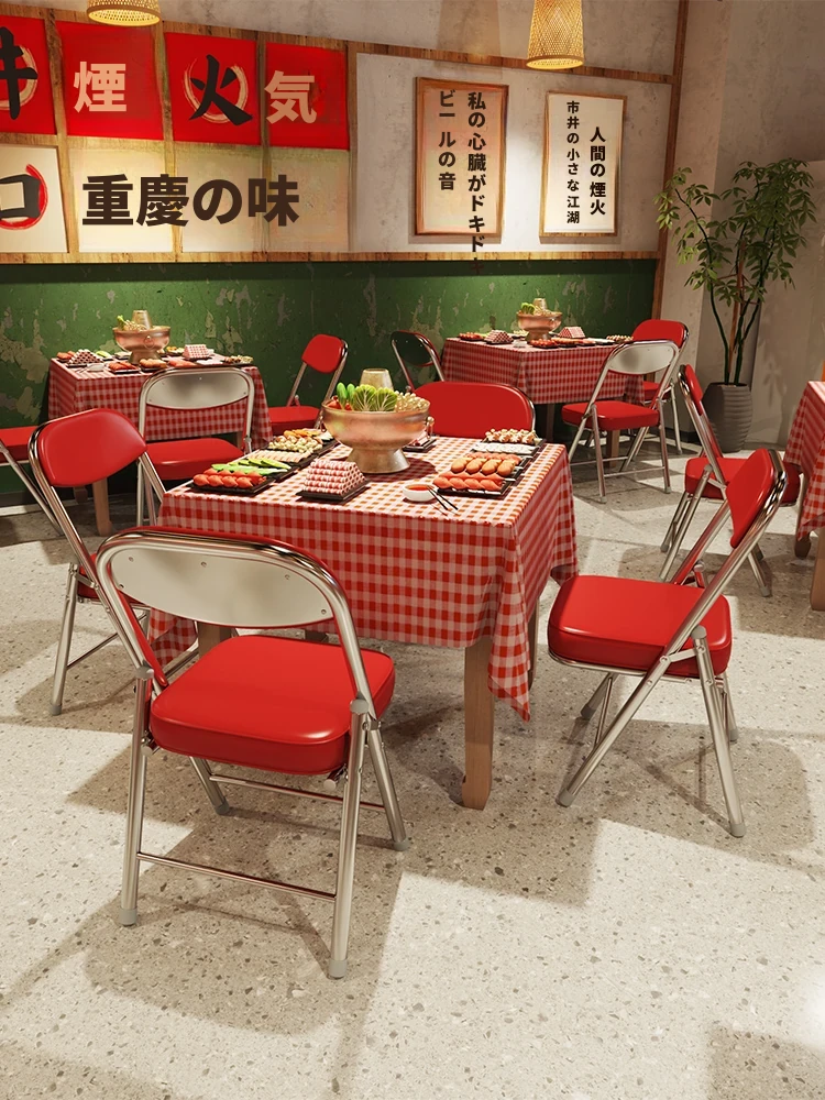 レトロ香港風茶餐廳のスタイリッシュな折りたたみ椅子|火鍋、麻辣烫、タピオカミルクティー、焼肉店に最適!インダストリアルデザインで、おしゃれな空間を演出します。快適な座り心地で、どんなシーンにもぴったり!