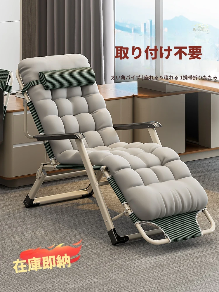 折りたたみリクライニングチェア|オフィスの昼寝やリラックスタイムに最適!座っても寝ても使える便利なチェア|寮やデスク周りにぴったりな快適な仮眠椅子