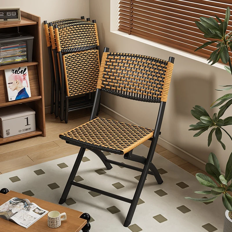 折りたたみ式ラタンチェア - 家庭用・背もたれ付き・バルコニーやアウトドアに最適!軽量プラスチック製で持ち運びも簡単、キャンプや屋台での使用にもぴったり!