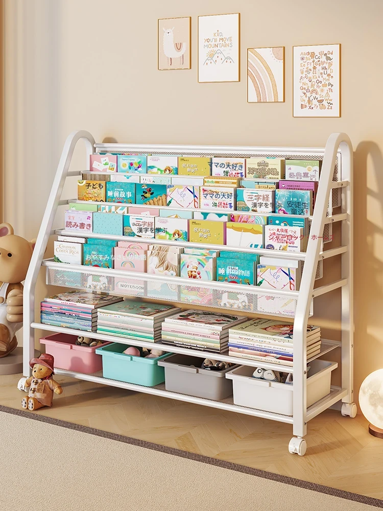 子供用本棚 家庭向け絵本ラック 読書スペースに最適!移動可能なおもちゃ収納棚 シンプルなベビー書棚 地面に置ける収納ラックで、お部屋をすっきり整理!