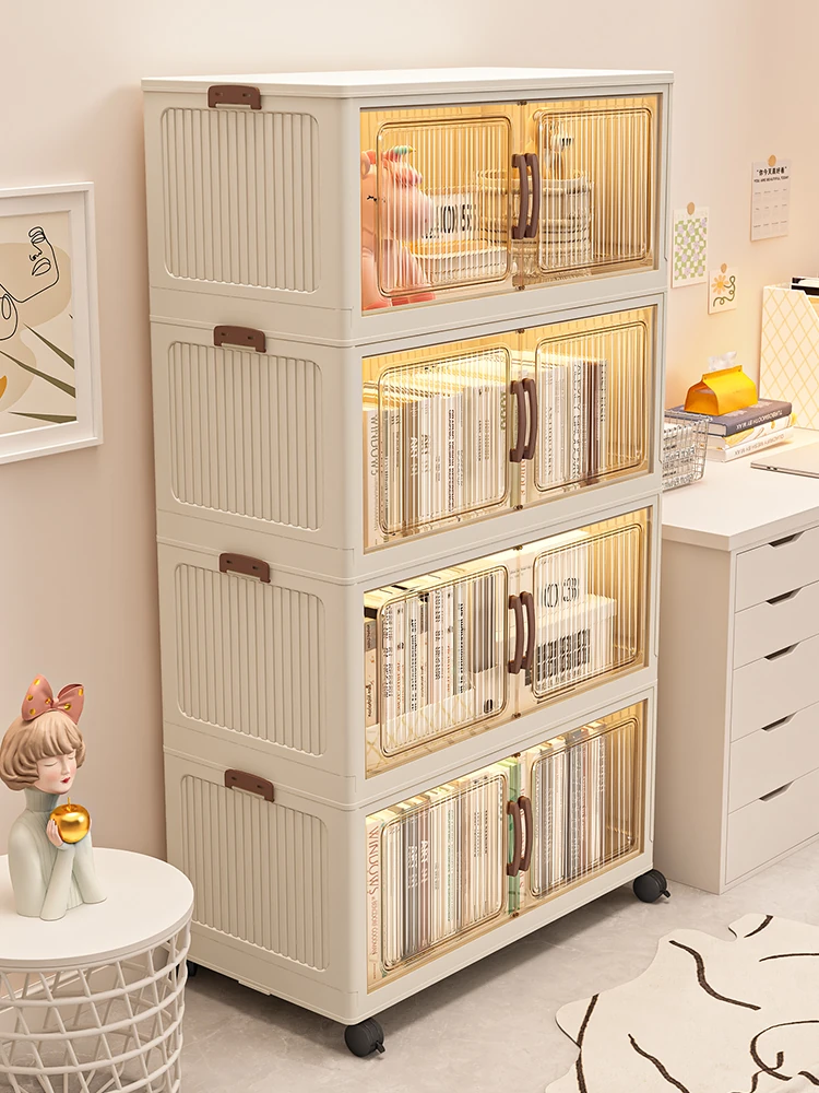 移動式書棚!子供向け防塵書庫、収納力抜群の本棚。家庭用キャスター付きの小型収納ラックで、使い勝手抜群!お部屋をスッキリ整理整頓。