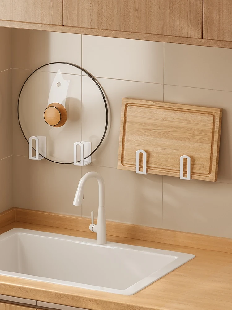 穴あけ不要!壁掛け式鍋蓋スタンド&まな板ラック - キッチンの必需品!多機能でスペースを有効活用、料理をもっと快適に。家庭用の便利な収納アイテム!