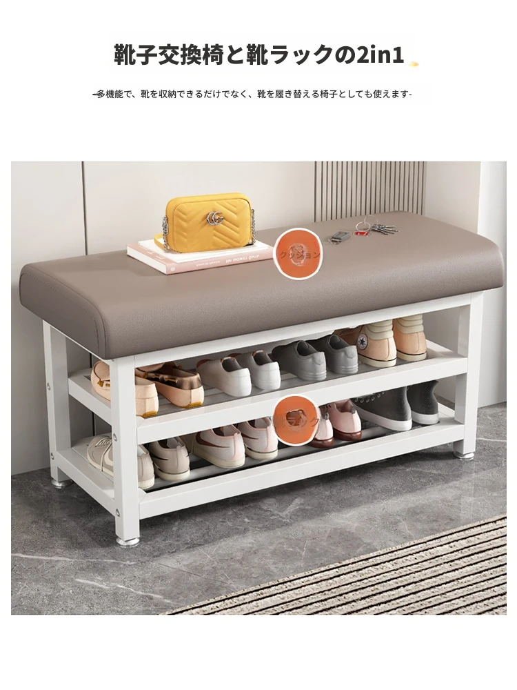 玄関用スチール製ソフトパッド付きシューズベンチ - 入り口での靴の着脱が快適に!靴棚としても利用可能なスタイリッシュなデザイン。座って靴を履くのに最適なアイテムです!